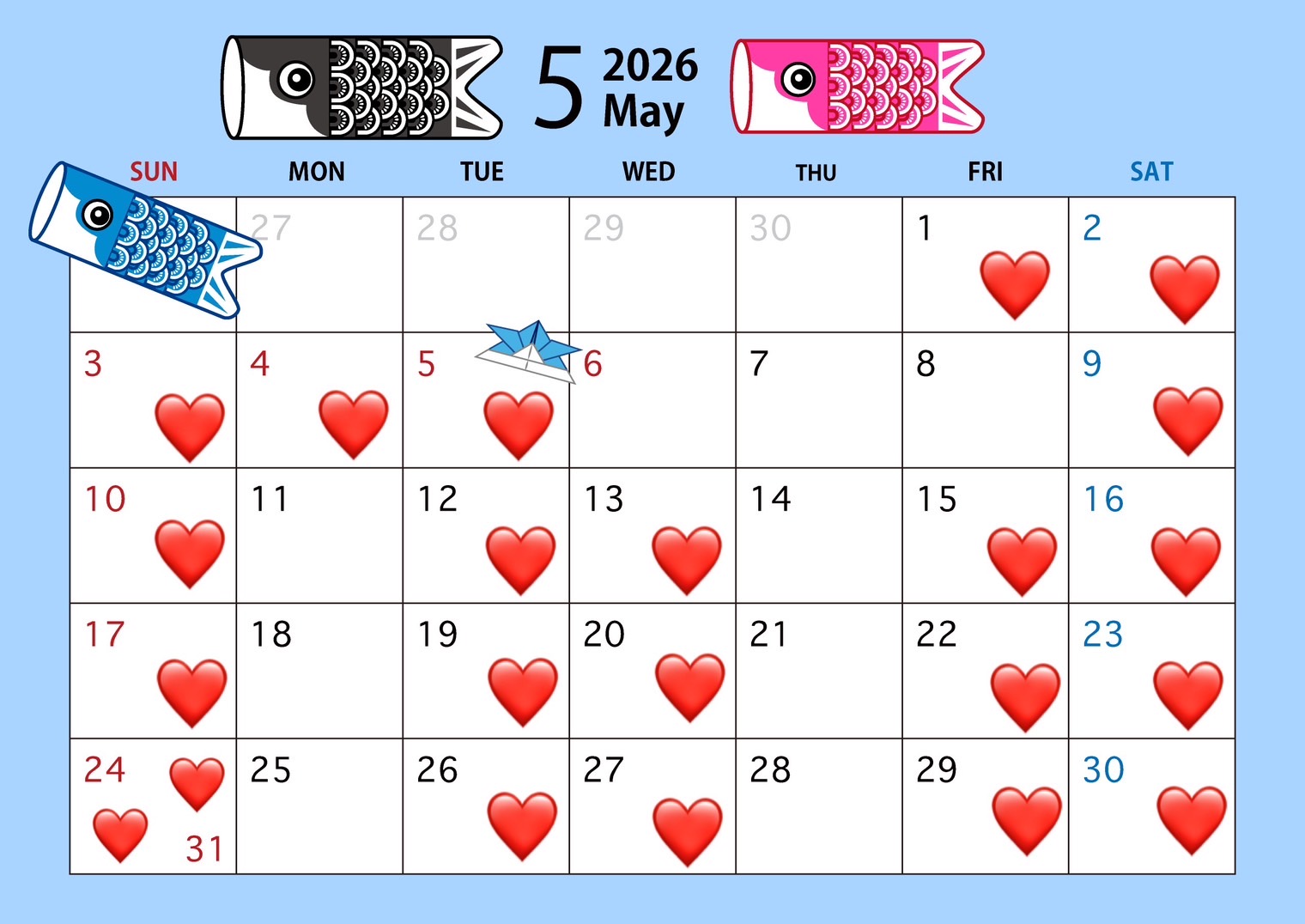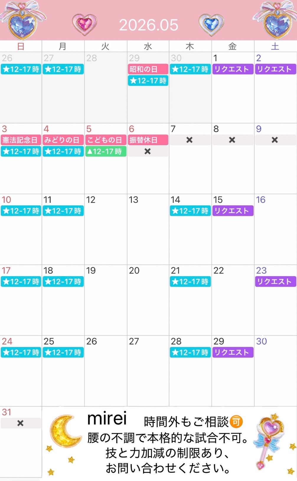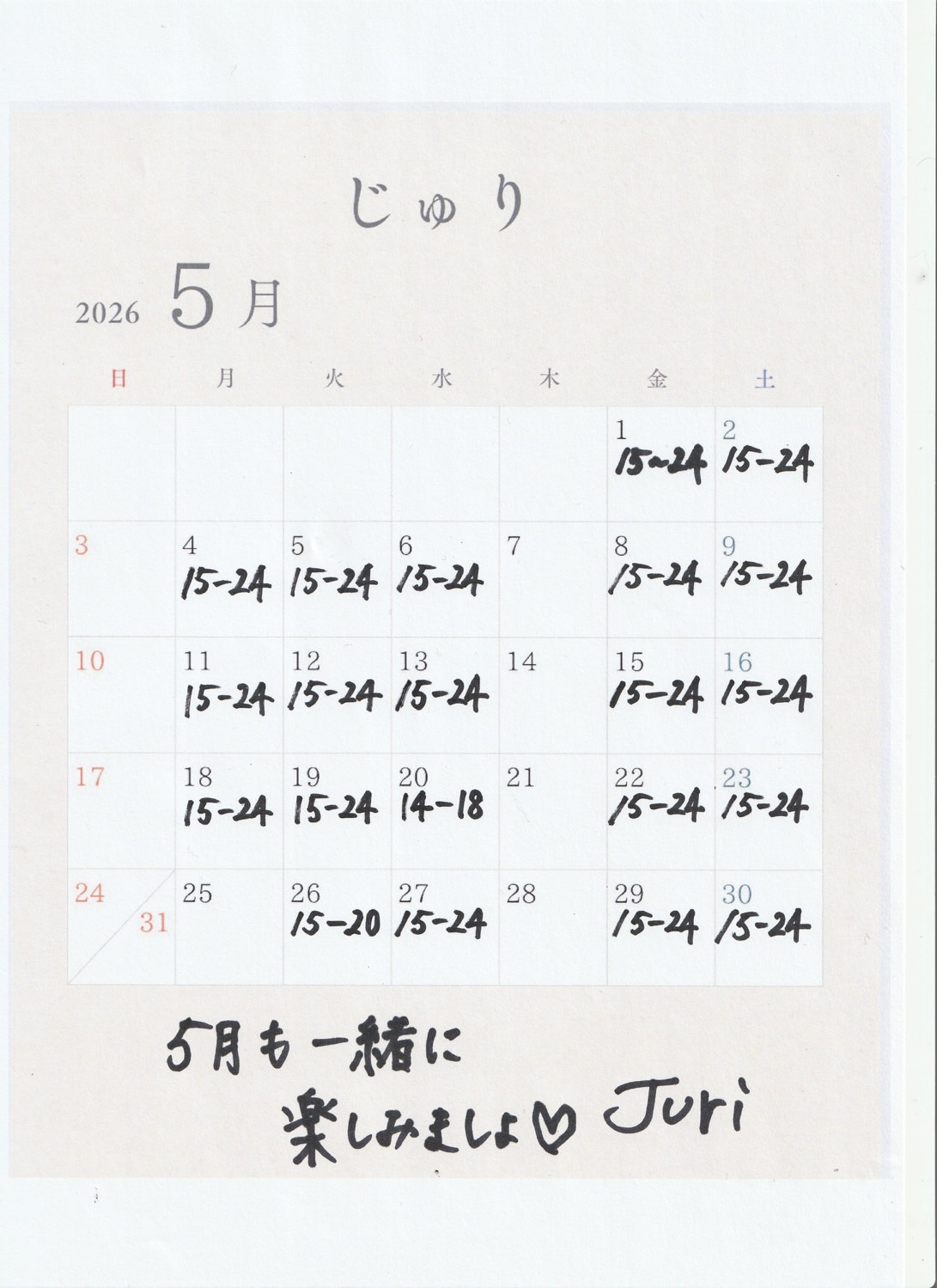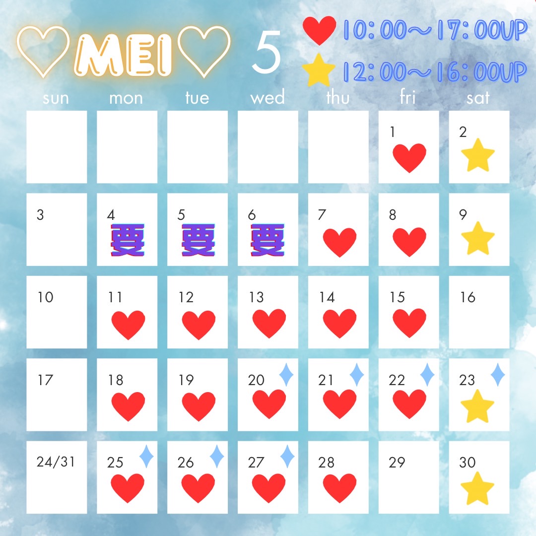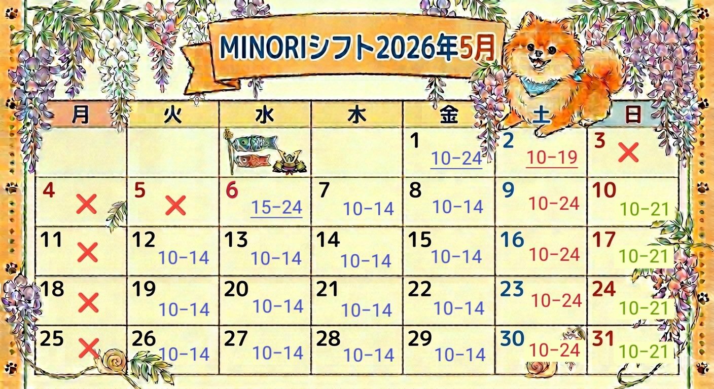 2026年5月の出勤表になります!